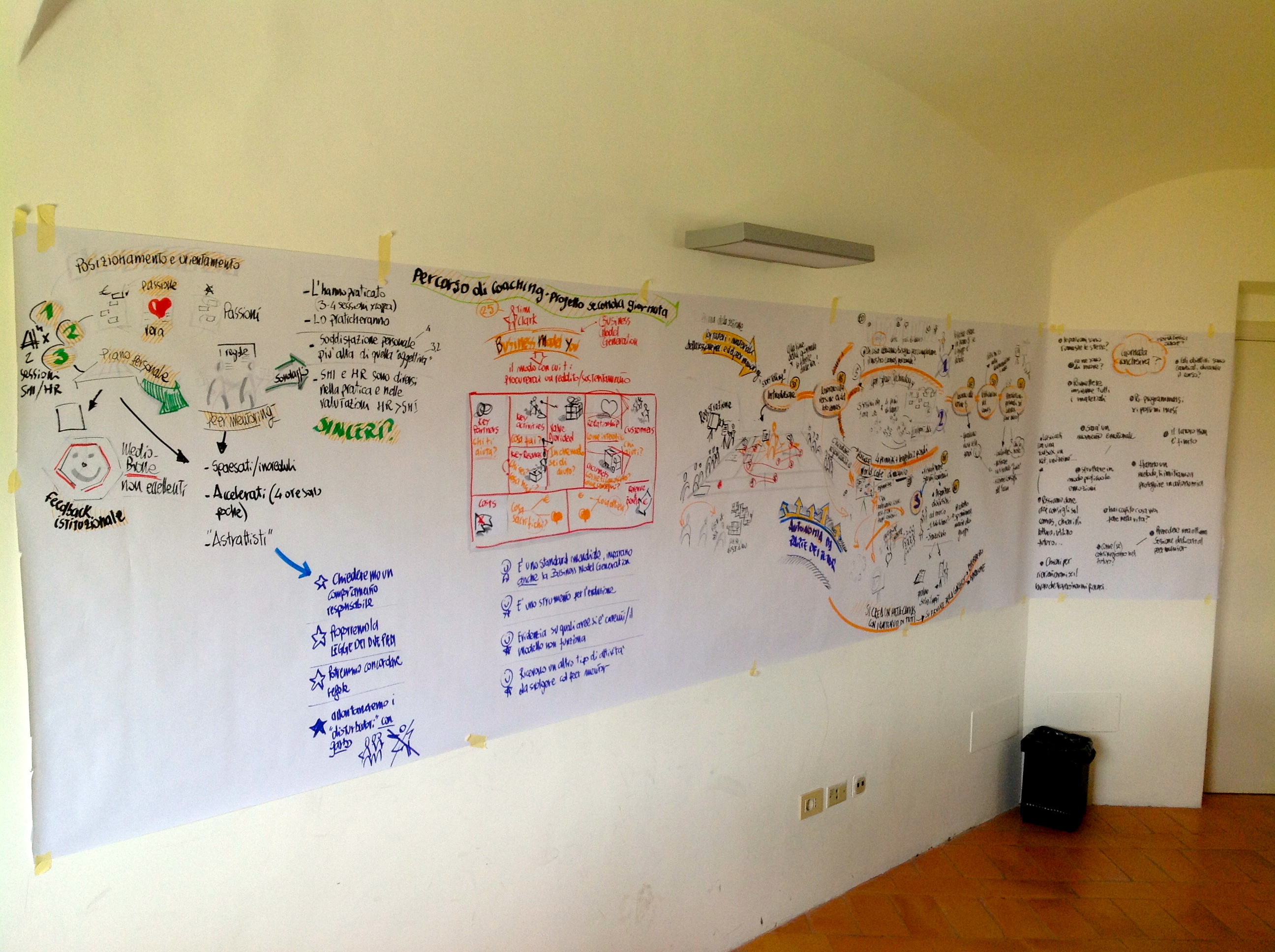 Several days ago I receive a call from a seductive female voice, asking me an interview about a one-day seminar I just taught. I am too busy to wonder which of my bastard friends are joking me and I agree for an appointment the morning after. In the meanwhile I’m convincing that it wasn’t really a joke but a misunderstanding, obvious… The next morning Lucilla Niccolini, a journalist from Corriere Adriatico, clarify everything: no misunderstanding at all, she wants to write an article about me! One hour of interview and five endless days passed with a recurring mind: was I able to make her understand? The facilitator’s job, especially the visual facilitator, in Italy is not so well known. The risk of originating misunderstandigs was more than real… And instead Lucilla was brilliant, not only rendering faithfully our discussion, but even going beyond through her personal, and definitely appropriate, interpretation. It’s not me to say this, but many friends that called me, happy to eventually understand the job I’m doing! That’s the reason why I decided to re-publish it (and to translate it for my foreign friends), because it properly gives the sense of my job.